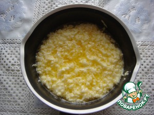 Когда масло станет закипать, влить в него тонкой струйкой взбитые яйца, постоянно размешивая,