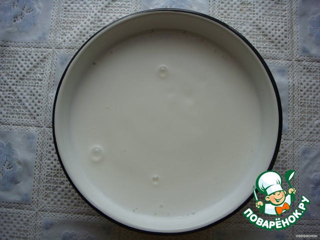 Кефир немного подогреть на плите, постоянно помешивая, чтобы не створожился, снять с огня и добавить соду...
