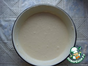 Добавить яйца и просеянную муку, замесить - тесто оно не должно быть густым, тесто поставить в теплое место (не накрывать)