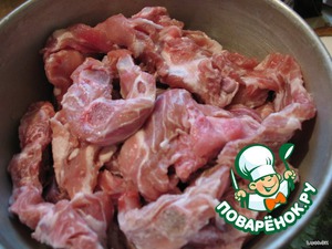 • Свинину на хрящах разморозить, промыть, сложить в дуршлаг и дать стечь воде