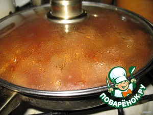 • Дальше рагу кладем в кастрюлю или в сковороду с высокими бортиками, подливаем немного водички. Вода не должна полностью покрыть мясо!