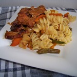 Спасибо,Танечка,за прекрасный рецепт .Получилось очень вкусное мясное блюдо с приятной остротой,не перебивающей вкус мяса и насыщенными овощами.Гарнир -макароны. Очень понравилось блюдо!Несомненно,буду готовить тАк и впредь.