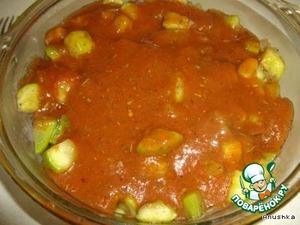 Делаем соус: сок из помидоров смешиваем с кетчупом, горчицей, оливковым маслом и специями - прованские травы.