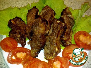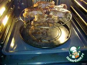 Поставить запекать ребрышки в духовку (лучше на решетке) на 20-25 минут при 190-200*С (все зависит от количества и величины куска, надо смотреть). Лучше инфра-жаркой (если такая функция имеется при 180*С - у меня есть и это супер)