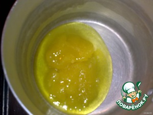Для маринада: 2 столовые ложки меда немного растопить (если такой же засахаренный, как у меня)