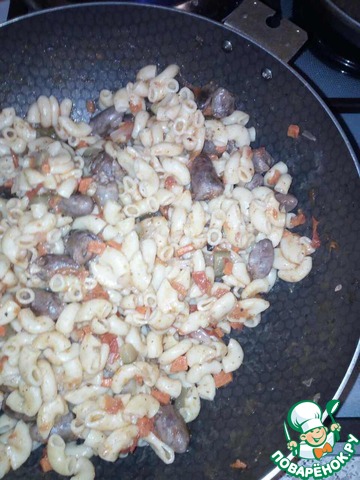 Ингредиенты для «Куриные сердечки с макаронами»: