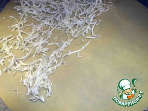 Кладем нашу лепешку на противень, выкладываем начинку.