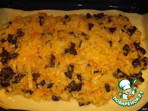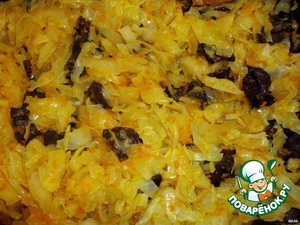 Обжариваем капусту и морковку, соединяем с грибами. Начинка готова.