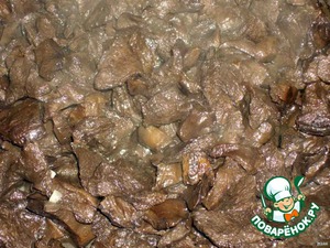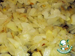 Грибы отвариваем, потом обжариваем, добавляем к луку.