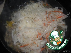 Добавляем квашеную капусту. От рассола сильно можно не отжимать.