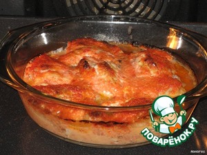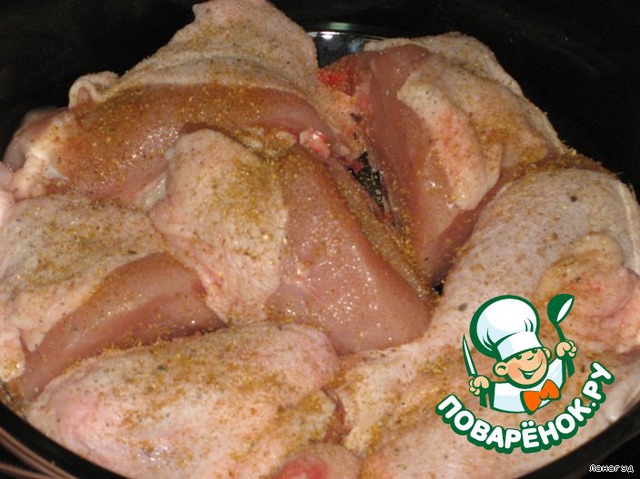В помидорно-чесночную смесь добавить майонез и залить этой смесью курицу. -