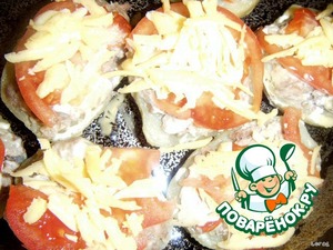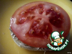 7. Помидоры режем кружками и выкладываем сверху на наши лодочки.