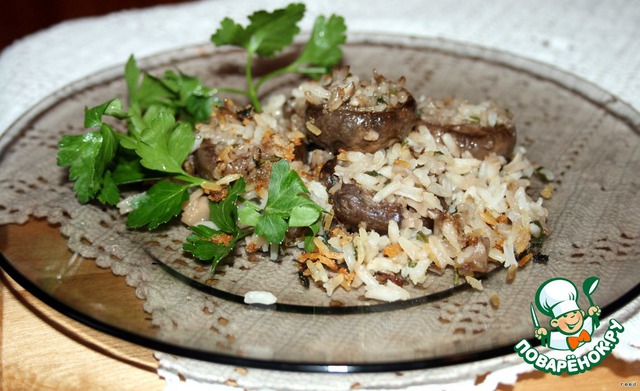 Рис отварить и соединить с грибами и петрушкой,посолить,перемешать.
