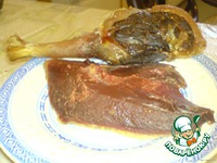 Описание: Это национальное блюдо татар и башкир. У меня есть здесь рецепт вяленого гуся, но без фотографий. Дядя угостил меня гусeм и я его завялила и сфотографировала.