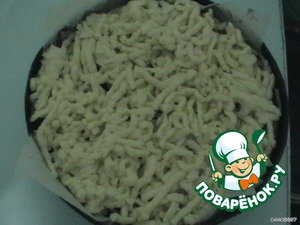 Достать тесто из морозилки и натереть сверху.