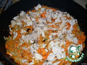 Сделать зажарку:обжарить курочку с луком и морковью