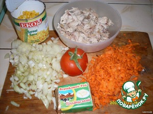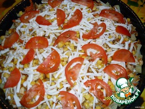 Сверху-кукурузку, тертый плавленый сырок, дольки помидорчика.