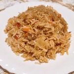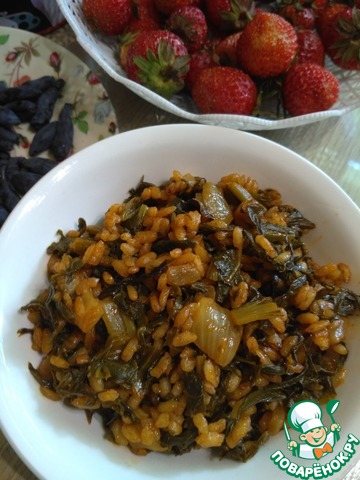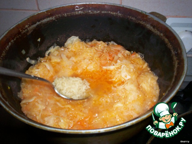 Когда капуста протушилась до полуготовности, в середину казана добавить рис.