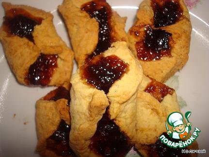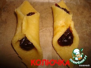 тесто раскатываем тонким слоем и режем его ромбиками в серединку кладем немножко повидла и соединяем края.Но повидла немножко что бы не начало течь
