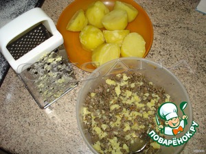 Картошку я правда чуть раньше сварила,на ней сделала тесто(жалко выливать жидкость).Чуть остывшую картошку натёрла на крупной тёрке.