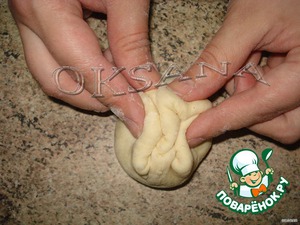 Соединяю края лепешки вверх и формирую из неё шарик.