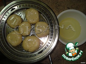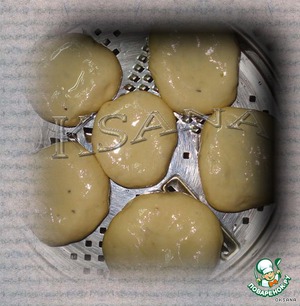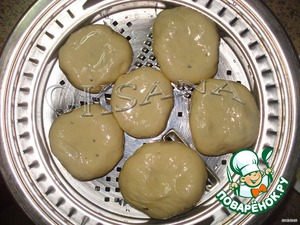 Перед тем как укладывать в пароварку,каждый шарик окунаю в подсолнечное масло- полностью.Ложу на расстояния свои шарики друг от друга.