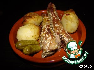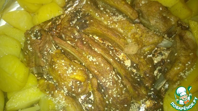 За 5 минут до окончания запекания я посыпала ребрышки кунжутом.