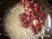 Сердечки, желудочки и печенку нарезаем, в сковородку закладываем только сердечки и желудочки, тушим минут 5, добавляем лук, обжариваем все вместе и в самом конце добавляем печеночку и быстро-быстро обжариваем (масло не жалеем, чтоб рис получился сочным). -