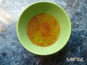 В пиалу бросаем щепотку шафрана и заливаем кипятком, настаиваем 20 -25 мин.