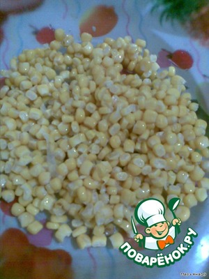 • С кукурузы cливаем жидкость и пересыпаем в салатницу