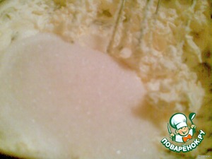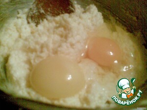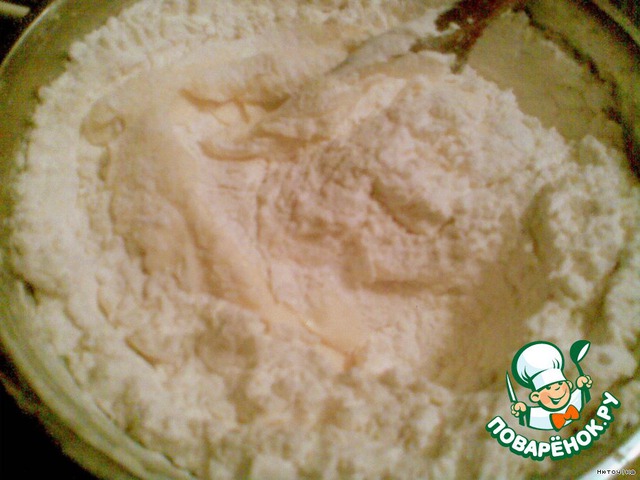 В мисочке слегка взбиваем желтки с пудрой и мукой ...
