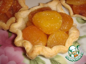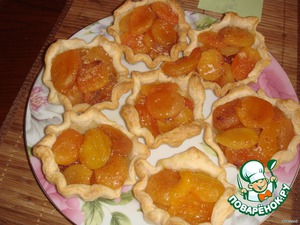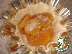 Кладём на тесто курагу и посыпаем сахаром (можно мёдом смазать).