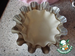 Берём постное слоёное тесто (я покупала специальное постное) 150 гр, делим на маленькие кусочки, каждый кусочек раскатываем.