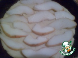 Грушу нарезать и выложить на тесто