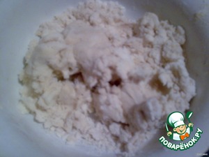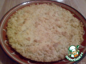 Желток, масло, сахар и муку смешать и размять руками в крошку.