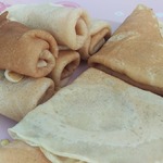 на смазанную сковородку по центру льем тесто(блинчики получаются не очень большими) и жарим их под крышкой(это обязательное условие) с обеих сторон