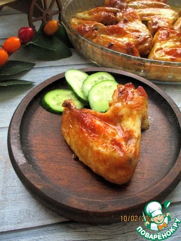 Давным-давно записала в тетрадь рецептик маринада, все никак не доходили руки... :-) Но наконец-таки дошли, приготовила я эти крылышки. Делюсь с вами, поварята, маринад неплохой ))