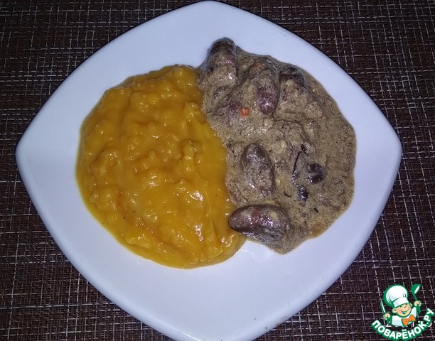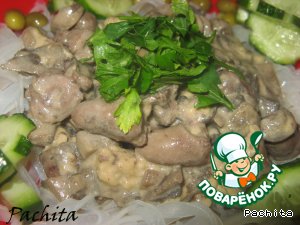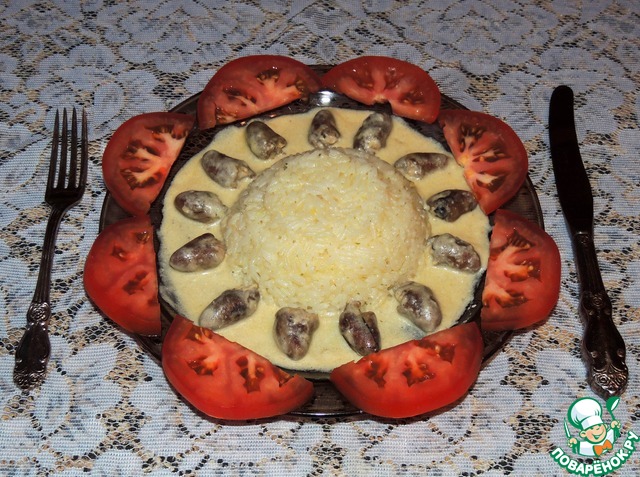 Рецепт «Куриные сердечки в горчично-сырном соусе»: