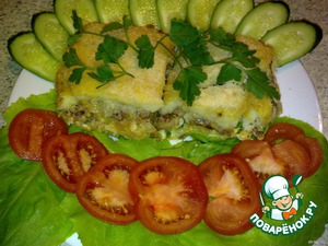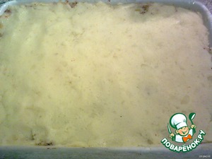 Увидела такое чудо по телевизору и вперед. Очень славная запеканочка получилась. Это из области -резервы холодильника. Но у меня так не получается. Пришлось готовить с самого начала. Все так ладненько вышло. Картошечка-пюре, рыбная консерва и капусточка вареная с яйцом. Попробуйте, думаю Вам понравится