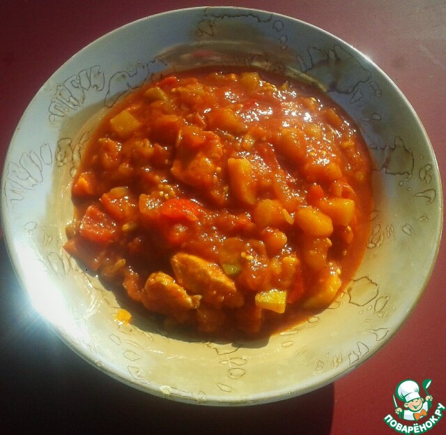 Лучше всего готовить это блюдо в большой жаровне или глубоком сотейнике.