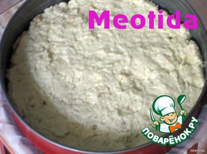 ворму разъемную большую, застилаем бумагой, смазываем дно и бортики маслом, выкладываем зеленый слой, разравниваем