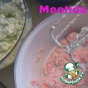 смешиваем 2 желтка, 400гр творога, 1/2 стакана сахара, желе(со вкусом вишни), немного ванилина...................в отдельной миске взбиваем 2 белка -