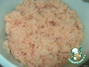Пропустить через мясорубку вместе с очищенной луковицей.