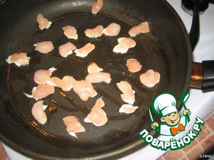 Куриную грудку моем, нарезаем небольшими кубиками.