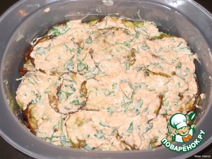 Осталась начинка от баклажанов, которые я делала, добавила в нее зелени и обмазала этим составом кабачки - получилось очень вкусно!
