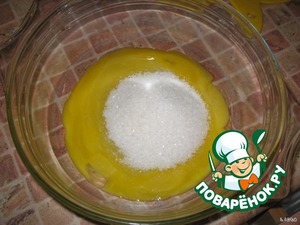 Желтки растереть с 0,5 стакана сахара вилкой.