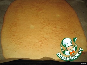 Выпечь бисквит при температуре 200 градусов до появления светло-коричневой корочки (~ 15 минут).