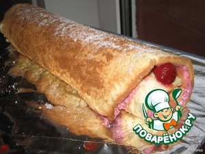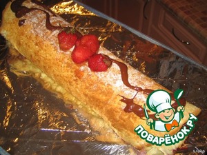 Вот мой быстрый вариант. Дайте рулету пропитаться начинкой, приглашайте гостей, подавайте с чаем, удивляйте всех. Приятного аппетита =)