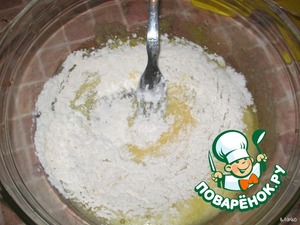 Ввести в желтки с сахаром просеянную муку и перемешать до однородности.