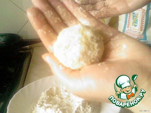 Ставим сковороду на огонь, наливаем масло. Тефтельки формируем смоченными руками (чтобы не прилипали), валяем их в муке, при необходимости ещё раз формируем и выкладываем на разогретую сковороду.